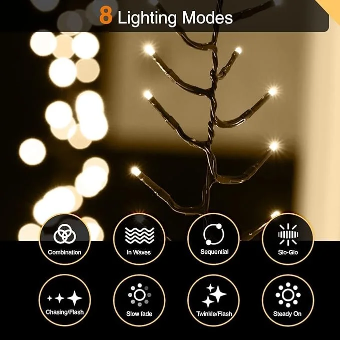 8 different lighting modes controlled from plug